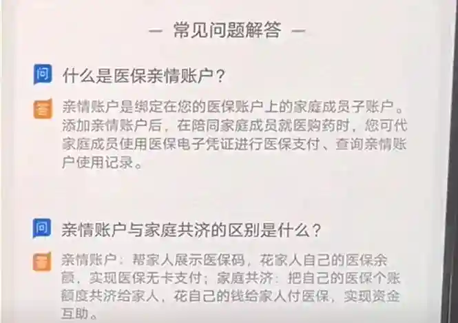 亲情账户是帮家人展示医保码,花家人自己的医保额度里的钱,实现的是医保无卡支付。