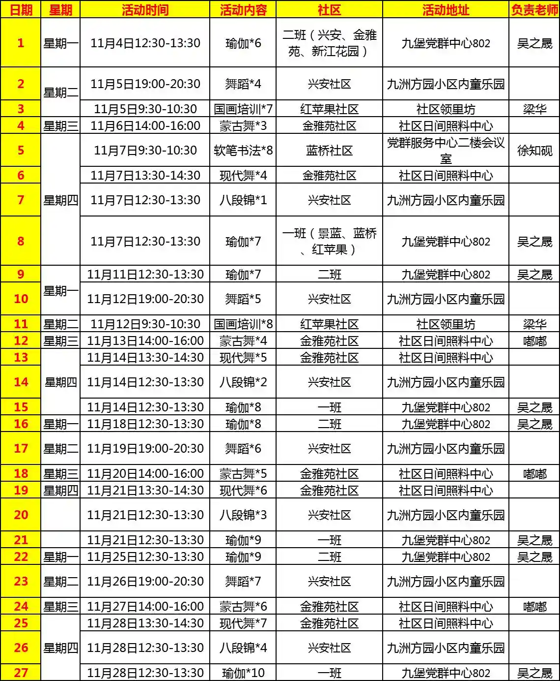 在这个充满活力的季节里,9i舞蹈社共举办了6次舞蹈教学活动,包括蒙古舞和现代舞两种风格,为居民们提供了一个展示自我、释放激情的舞台。