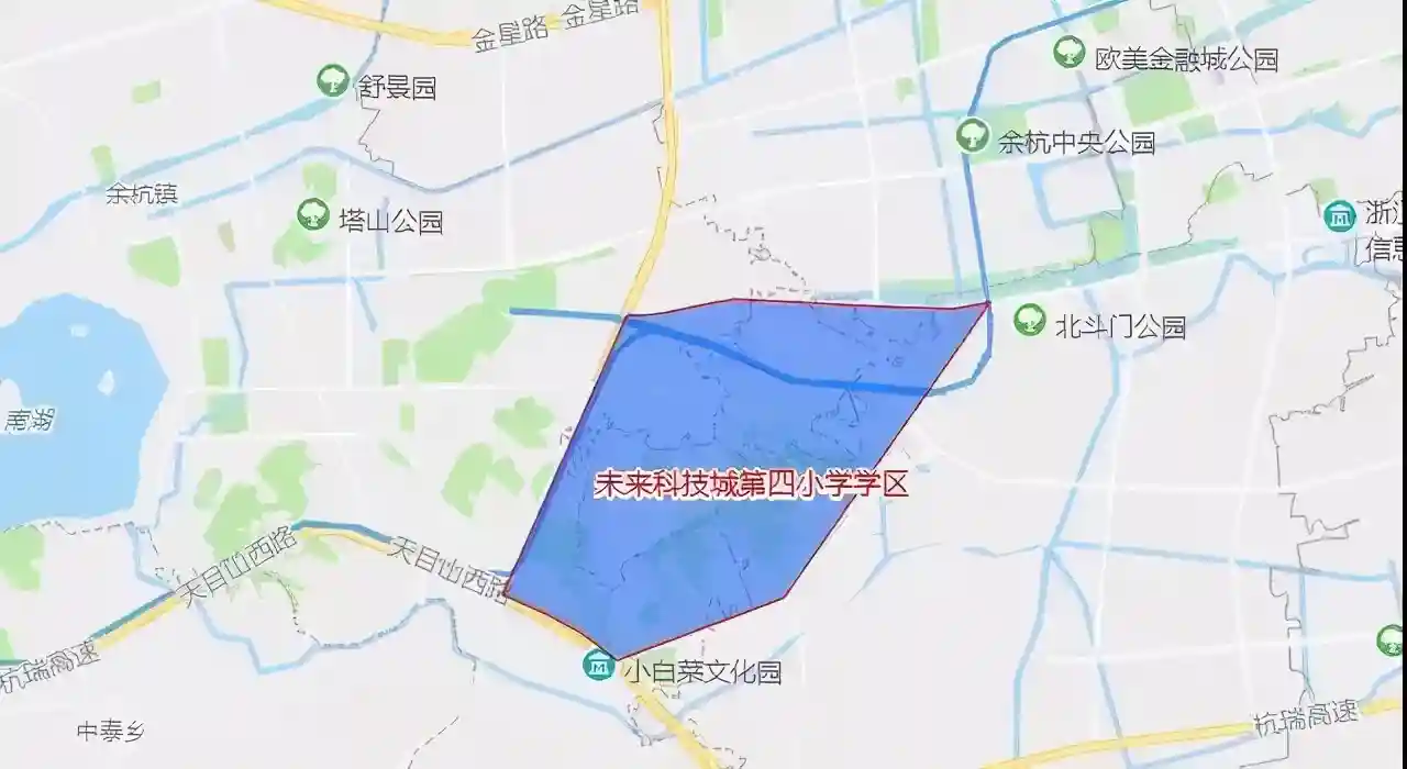 ▍未来科技城第四小学:学校北至万金路,南至规划道路,西至文良路,东至万金路,规划36班。学区范围覆盖仓南社区、宋家山社区。计划今年9月投用。