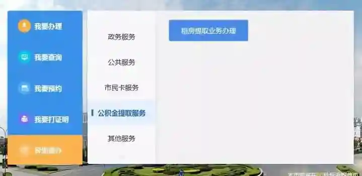 功能模块界面:我要办理公积金提取服务→租房提取业务办理