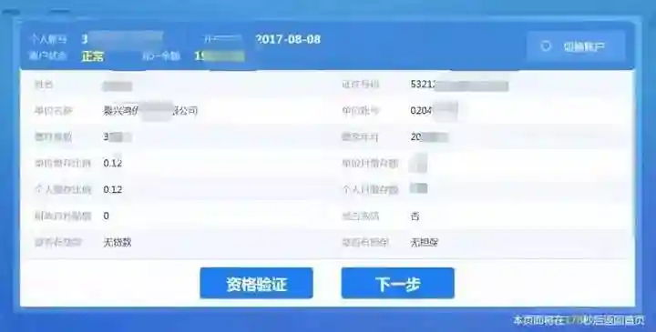 3.选择公积金账户信息