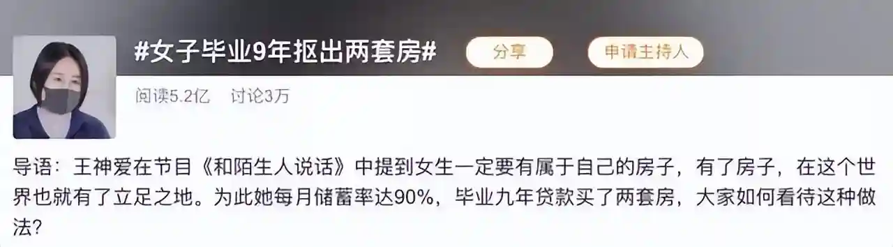 王神爱出来辟谣,其实,南京的两套房首付款,不全是她“抠”出来的。她曾在山东买过一套小房,当时花了不到10万元。后来因为被划为学区房,房价翻了几倍。她把这套山东小房卖掉,支付了南京第二套房子的首付。只有南京第一套房子的首付是真正抠出来的,“首付四五十万元,两人公积金可以全覆盖还款,不影响攒钱”。