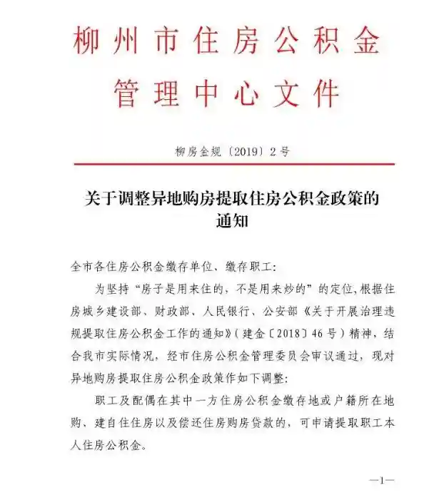 近日,柳州市住房公积金管理中心发布通知,对异地购房提取公积金政策进行调整,从9月6日起,在非柳州本市和非本人及配偶户籍所在地购房的,暂停受理提取住房公积金申请。